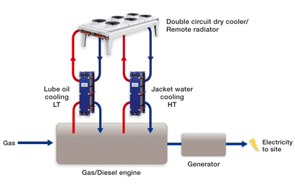 阿法拉伐可为典型的火花点火燃气发动机CHP系统提供高效冷却组件。