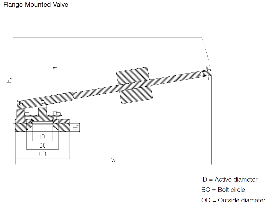 预设开启压力值必须高于储罐工作压力:工作压力小于 1 巴时高于 0.1 巴,工作压力≥ 1 巴时高于 10%。阀门应水平安装。最大倾斜度为 10°是可以接受的,但杠杆臂必须向内指向圆柱锥形罐顶的中心。