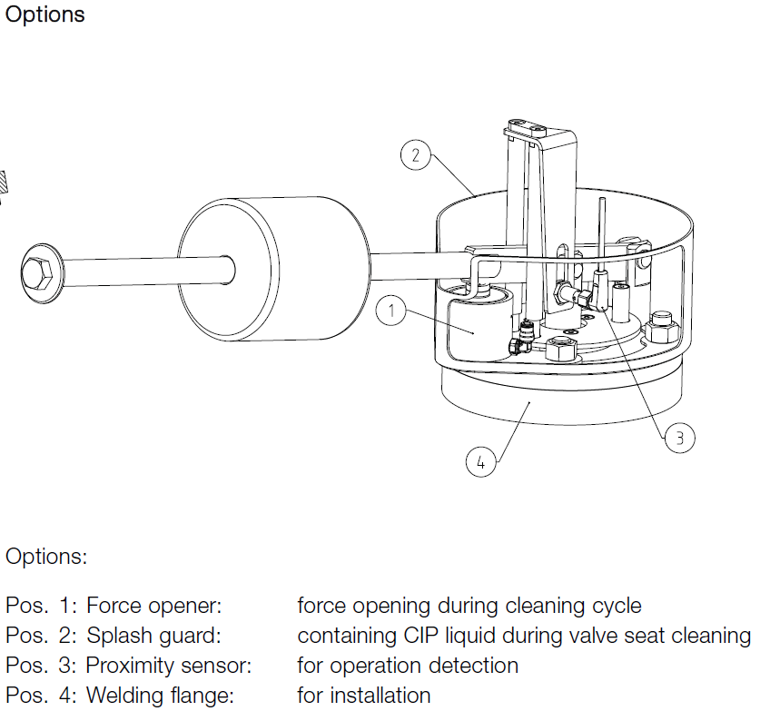 阿法拉伐泄压阀在关闭状态下由油箱清洗头进行清洗。但这不包括清洗阀座。为了将阀座作为清洁循环的一个组成部分,可选配气动强制开启装置和防溅罩。