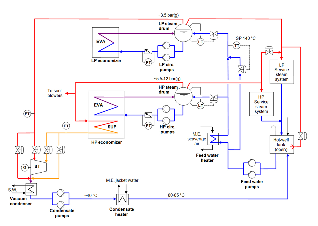 标准的Aalborg XW设计得到了增强,可以更有效地利用大型柴油机的废能,从而节省了燃油消耗并减少了CO2排放。
